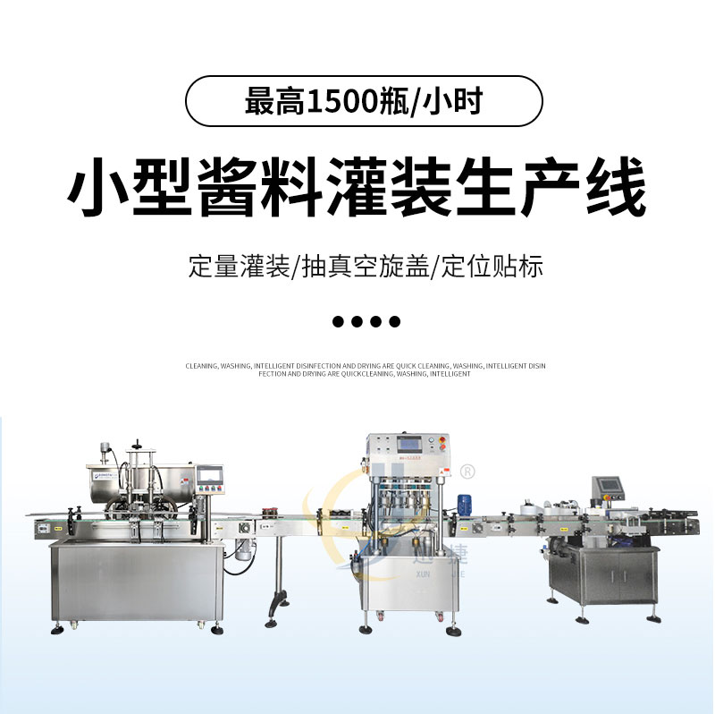 小型醬料灌裝生產線適用于調味品中帶顆粒并且濃度較大的香菇醬、辣椒醬、豆瓣醬、花生醬、芝麻醬、果醬、牛油火鍋底料