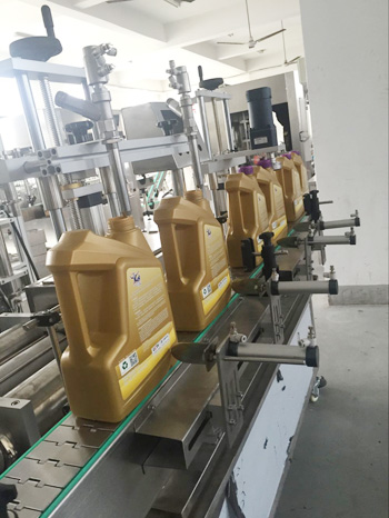 潤滑油灌裝旋蓋一體機為活塞式計量方式。計量范圍為1升-5升,離合式旋蓋結構,確保旋蓋合格率高,不傷蓋。本設備為灌裝旋蓋一體機,結構緊湊,性價比高。該型號灌裝機適用于醫藥、日化、食品、農藥及特殊行業,是對酒精等液體進行灌裝的理想設備。