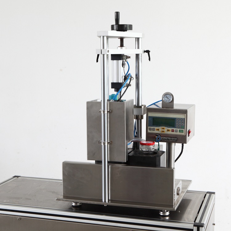 先從個(gè)詞半自動(dòng)來(lái)講,半自動(dòng)指的就是手動(dòng)與機(jī)器相結(jié)合的操作流程:半自動(dòng)玻璃瓶真空封口機(jī)是采用了人工上瓶,人工出瓶,機(jī)動(dòng)旋蓋與抽真空的方式來(lái)完成流程。由于人工上瓶,并且該半自動(dòng)玻璃瓶真空旋蓋機(jī)有無(wú)瓶不上蓋,無(wú)瓶不抽真空的特點(diǎn),所以大大減少了對(duì)瓶蓋與瓶身的損害。并且人工與機(jī)器的配合絲毫不浪費(fèi)時(shí)間,比純手工的生產(chǎn)效率要幾倍,還更節(jié)省人力,一臺(tái)機(jī)器只需一個(gè)人便可輕松完成。